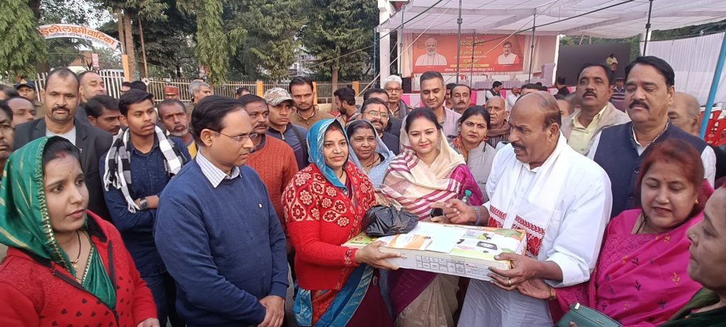 मुख्य अतिथि डॉ. वीरेन्द्र कुमार ने प्रधानमंत्री उज्जवला योजना के तहत लाभार्थी श्रीमती प्राची त्रिपाठी, पूनम द्विवेदी, विनीता सिंह सेंगर और वंदना द्विवेदी को रसोई गैस कनेक्शन वितरित किये।