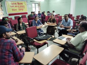 राज्य आनंद संस्थान द्वारा आयोजित तीन दिवसीय आनंदम सहयोगी मूलभूत प्रशिक्षण कार्यक्रम के कोऑर्डिनेटर लखन लाल असाटी के साथ पंचगनी महाराष्ट्र से हिमांशु भारत,भोपाल से प्रदीप महतो, टीकमगढ़ से नितिन बवेले, छतरपुर से श्रीमती आशा असाटी, कृष्ण पाल सिंह परिहार द्वारा विभिन्न सत्रों के माध्यम से प्रतिभागियों का ध्यान उनकी खुद की आवाज सुनने के लिए केंद्रित किया जा रहा है, लंबा शांत समय लेने के बाद कई प्रतिभागियों ने रोते हुए बताया कि उन्हें अपने परिवार के साथ किए गए व्यवहार पर पछतावा है, किसी ने कहा कि उन्होंने एक समय अपने पिता के निर्णय को अस्वीकार कर दिया था जिसका उन्हें आज बहुत दुख हो रहा है, किसी ने अपनी बड़ी बहन के इमरजेंसी कॉल को रिसीव नहीं करने को बहुत बड़ी भूल बताया, किसी ने कहा कि उनका स्वभाव बहुत चिड़चिड़ा है वह अपनी नौकरी का टेंशन घर लेकर जाते हैं और माता-पिता को दुखी करते हैं, किसी ने कहा कि वह हितग्राहियों के साथ न्याय नहीं कर पाते हैं, किसी ने कहा कि उनका स्वभाव बहुत कठोर है जिस कारण घर और दफ्तर दोनों जगह कार्य प्रणाली ठीक नहीं है, लगभग सभी प्रतिभागियों ने अपने खराब रिश्तों को सुधारने के लिए किसी न किसी को पत्र लिखकर माफी मांगी, अब वे सभी एक-दो दिन में उन्हें व्यक्तिगत रूप से मिलकर अथवा व्हाट्सएप के माध्यम से अपनी भावनाओं से अवगत कराएंगे,