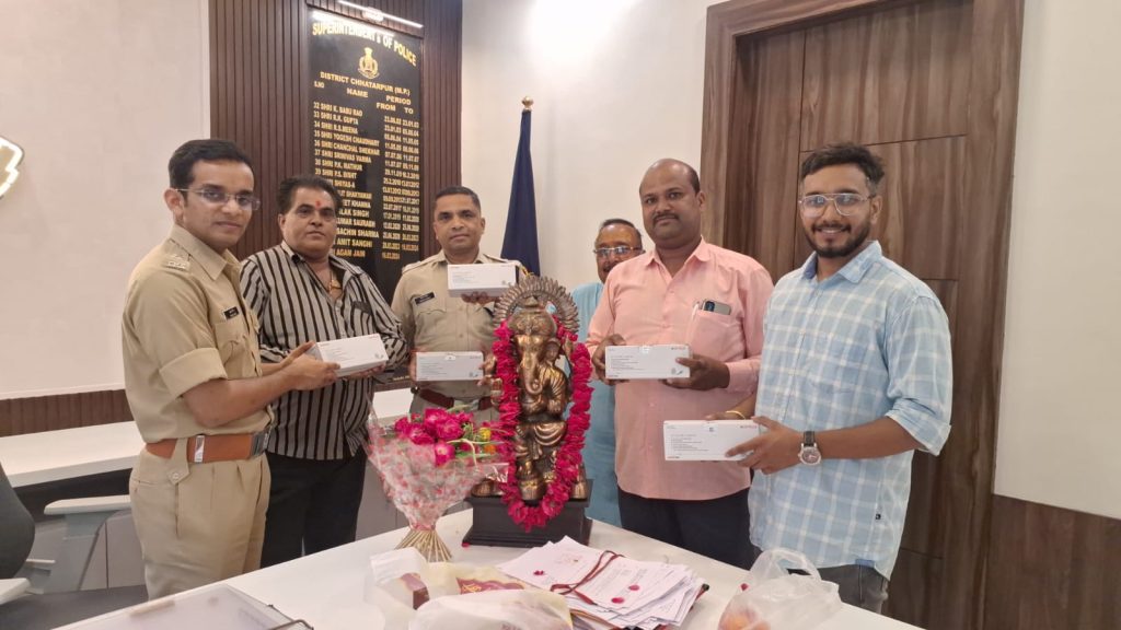 लूटकांड के शिकार हुये मसाला व्यापारी ने किया एसपी एवं एएसपी का सम्मान