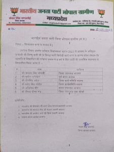 भोपाल। मध्य प्रदेश विधानसभा चुनाव में पार्टी के खिलाफ काम करने वालों पर पार्टी ने सख्त रुख अपनाना शुरू कर दिया है। विधानसभा चुनाव के बाद नेताओं पर कार्रवाई होनी शुरू हो गई है। बैरसिया विधानसभा में पार्टी के घोषित प्रत्याशी के खिलाफ काम करने के चलते 6 पदाधिकारी को 6 साल के लिए पार्टी से निकाला गया है।