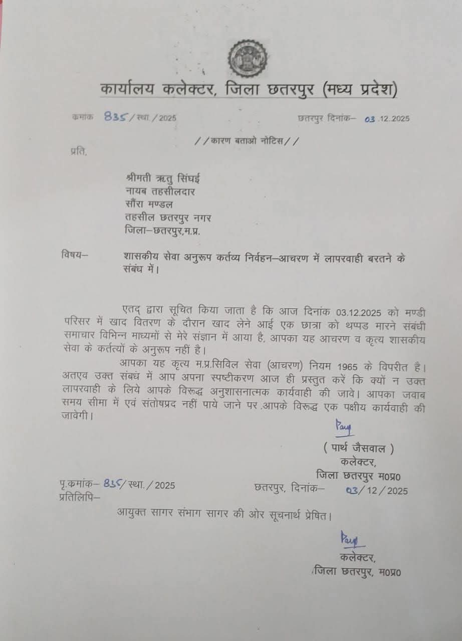छतरपुर /समाचारो के माध्यम से जानकारी मिलने पर खाद वितरण में विवाद को गंभीरता से लेते हुए कलेक्टर श्री पार्थ...